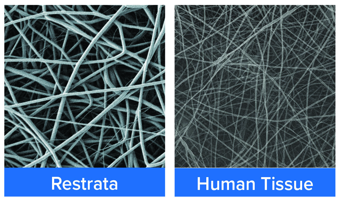 1. MKG-20002 Restrata Package Insert and IFU | 2. MacEwan MR, MacEwan S, Kovacs TR, Batts J. (October 2, 2017) What Makes the Optimal Wound Healing Material? A Review of Current Science and Introduction of a Synthetic Nanofabricated Wound Care Scaffold. Cureus Journal of Medical Science 9(10): e1736. doi:10.7759/cureus.1736 | 3. MacEwan MR, MacEwan S, Wright AP, Kovacs TR, Batts J, Zhang L. Comparison of a Fully Synthetic Electrospun Matrix to a Bi-Layered Xenograft in Healing Full Thickness Cutaneous Wounds in a Porcine Model. Cureus. 2017;9(8):e1614. Published 2017 Aug 27.doi:10.7799/cureus. 16